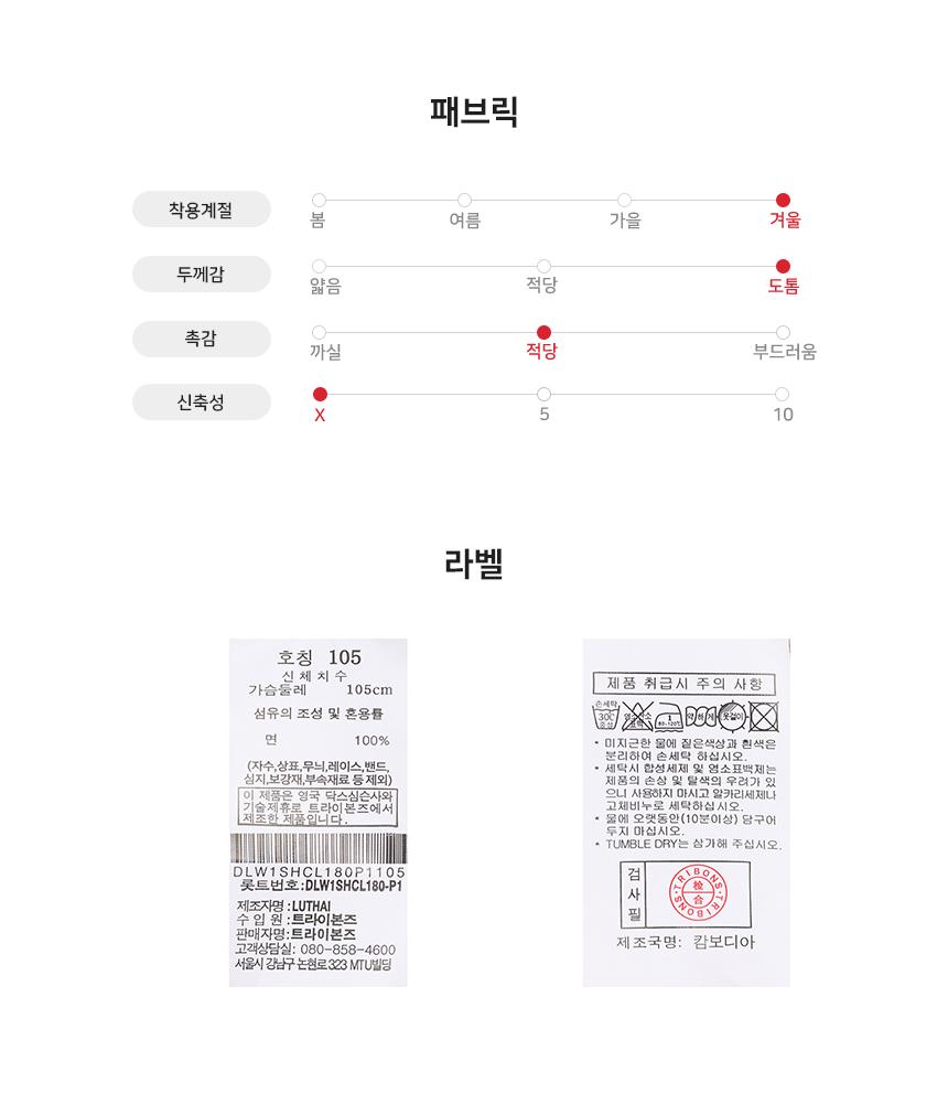 일상 착용 시 자연스러운 구김이 생기는 상품으로 세탁 후 일반/스팀 다리미로 관리해주세요.