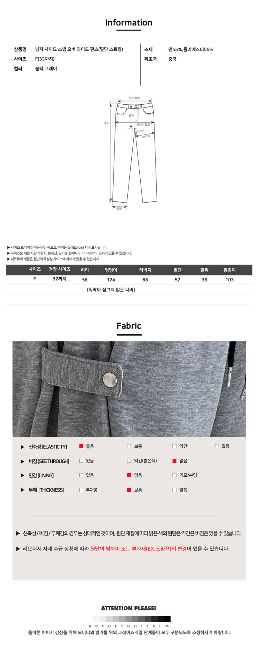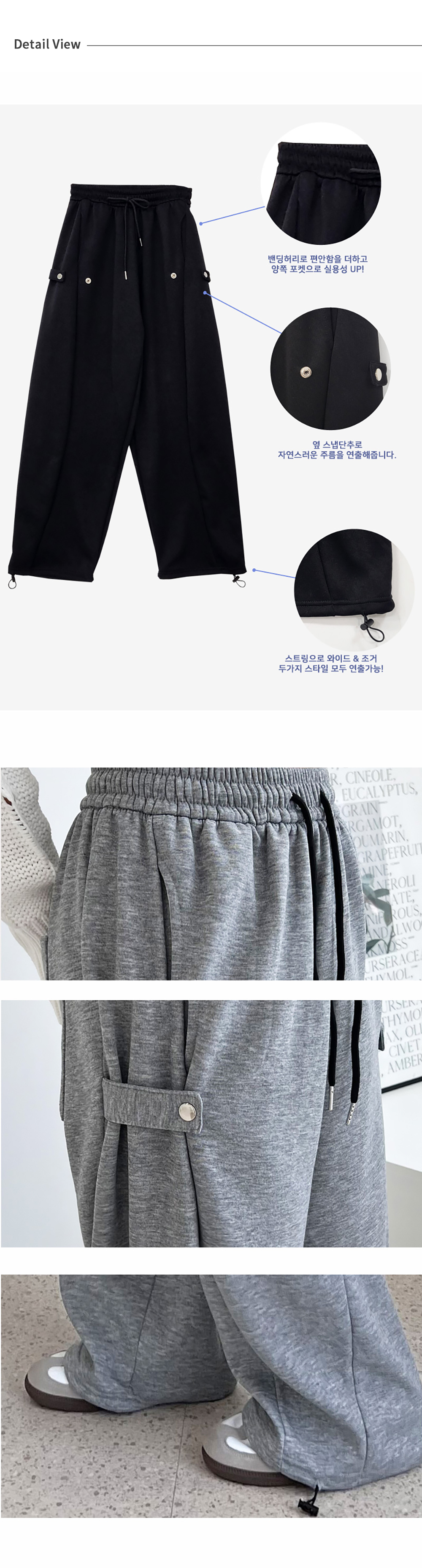 남자 조거 바지 사이드 스냅 오버 와이드 팬츠 BDM310