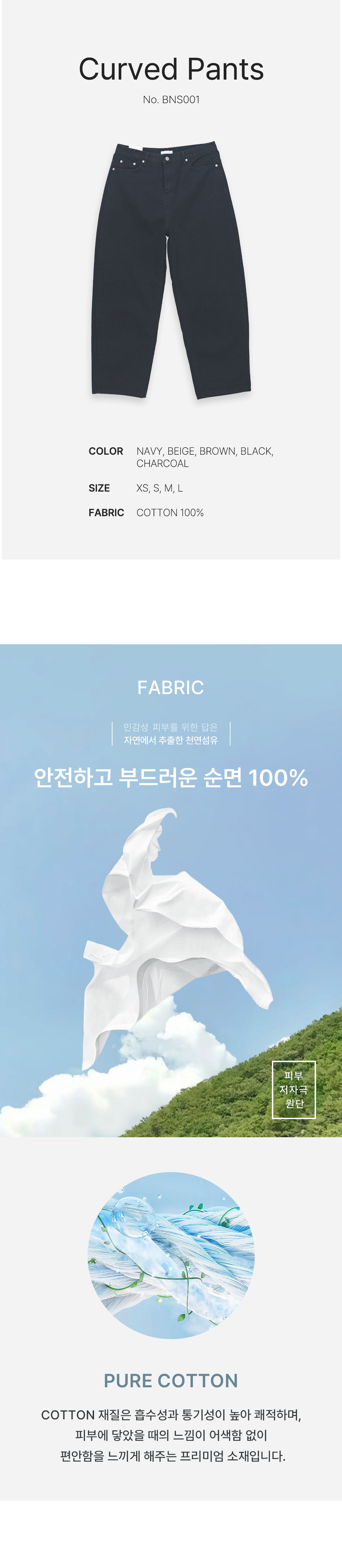 남자 커브드 팬츠 면 바지 BNS001