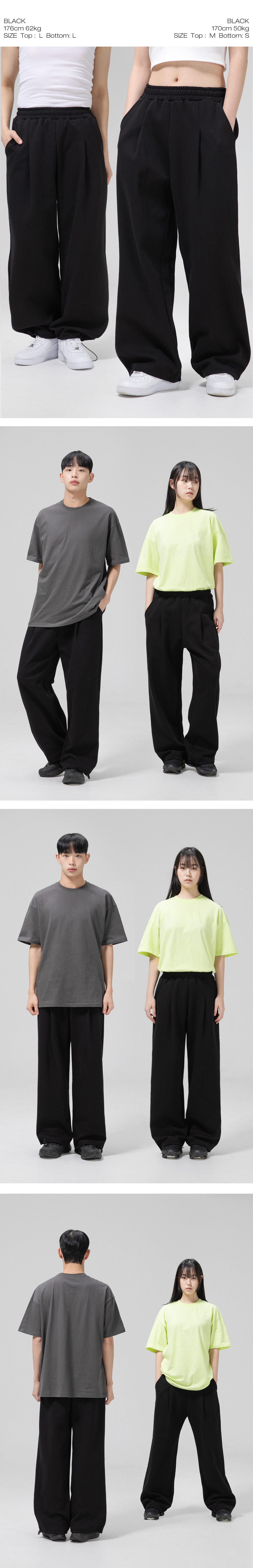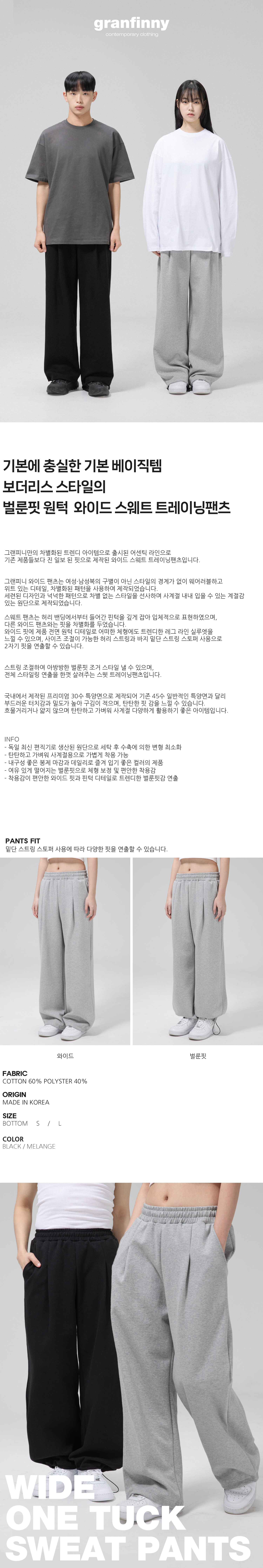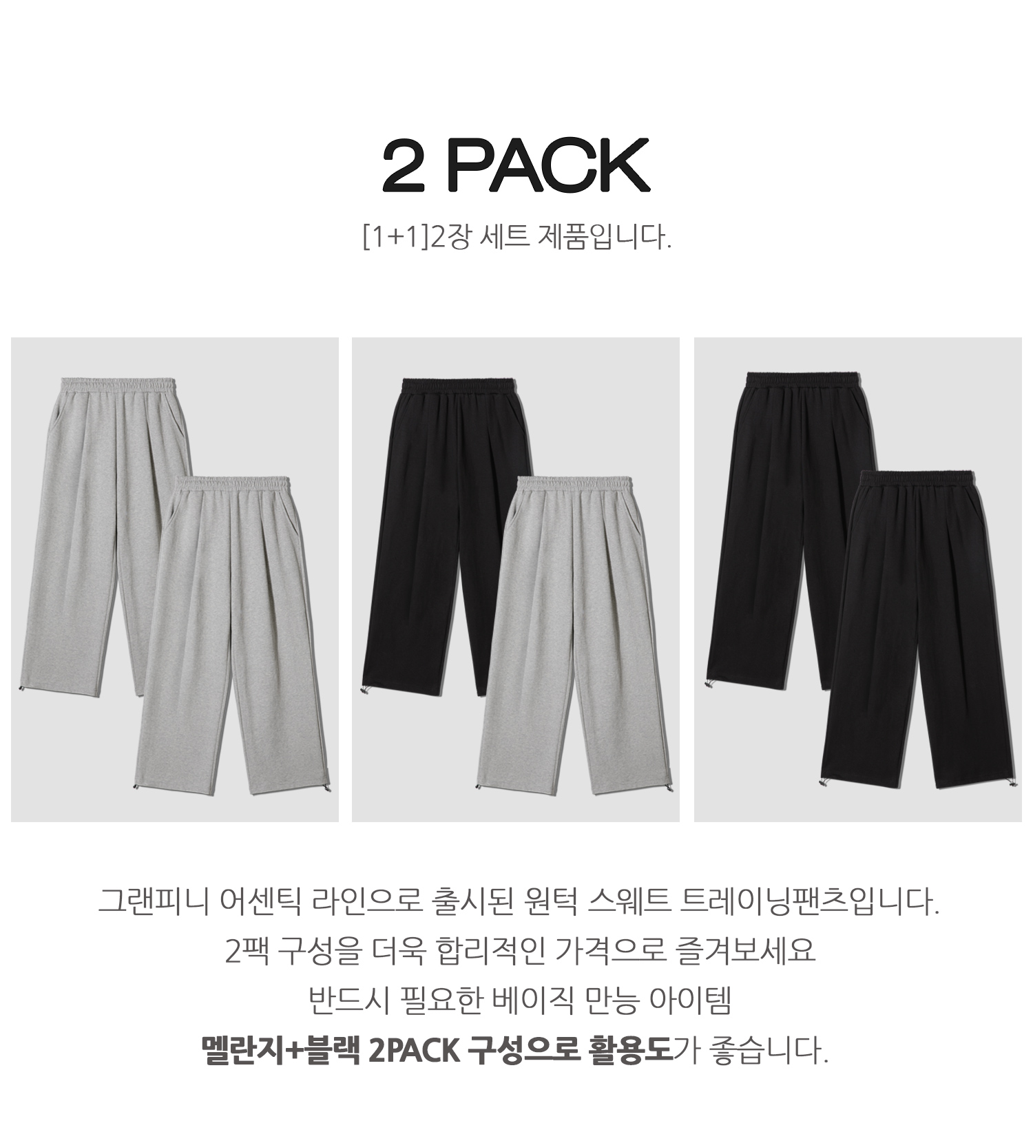 2pack 그랜피니 남녀공용 어센틱 무지 원턱 와이드 스트링 트레이닝 밴딩 벌룬 스웨트 트레이닝 팬츠 1+1