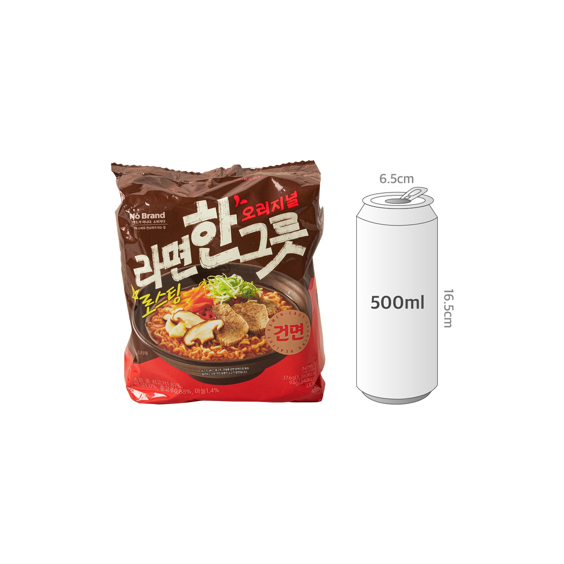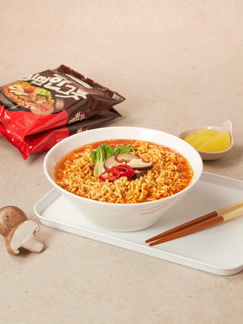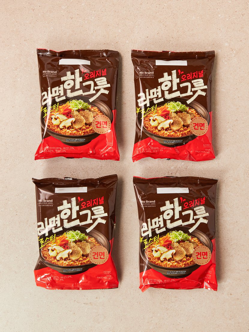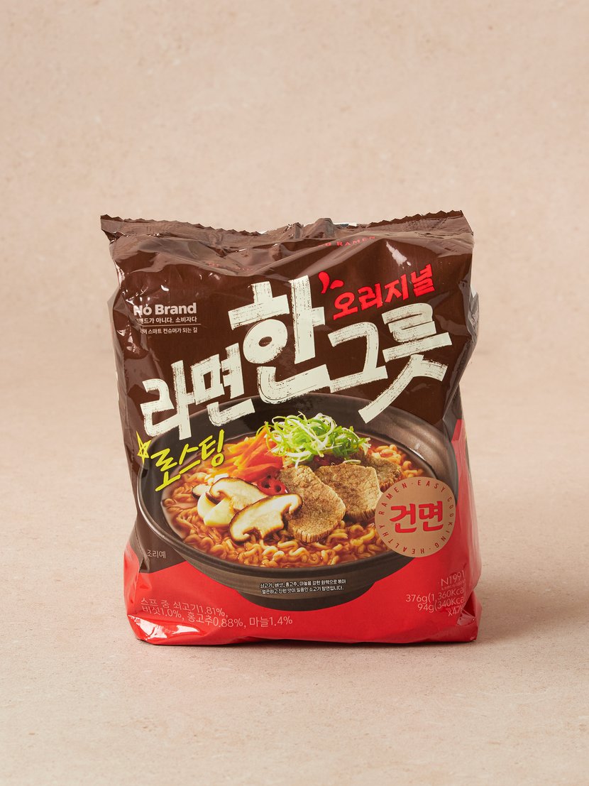 튀기지 않고 바람으로 말린 건면으로, 끝까지 쫄깃한 식감을 자랑하는 노브랜드 라면한그릇입니다. 면발에 작은 구멍이 있어 국물이 스며들어 더욱 촉촉하고 진한 맛을 느낄 수 있어요. 소고기 양지와 사골로 우려낸 진한 국물 베이스에, 버섯과 홍고추, 마늘 등을 강한 화력으로 볶아낸 깊고 선명한 맛이 특징입니다. Non Fried 방식으로 만들어 칼로리와 포화지방이 낮아 부담 없이 드실 수 있습니다. 또한, 환경을 고려한 원팩 포장으로 간편하게 즐길 수 있는 최고의 가성비 라면입니다.