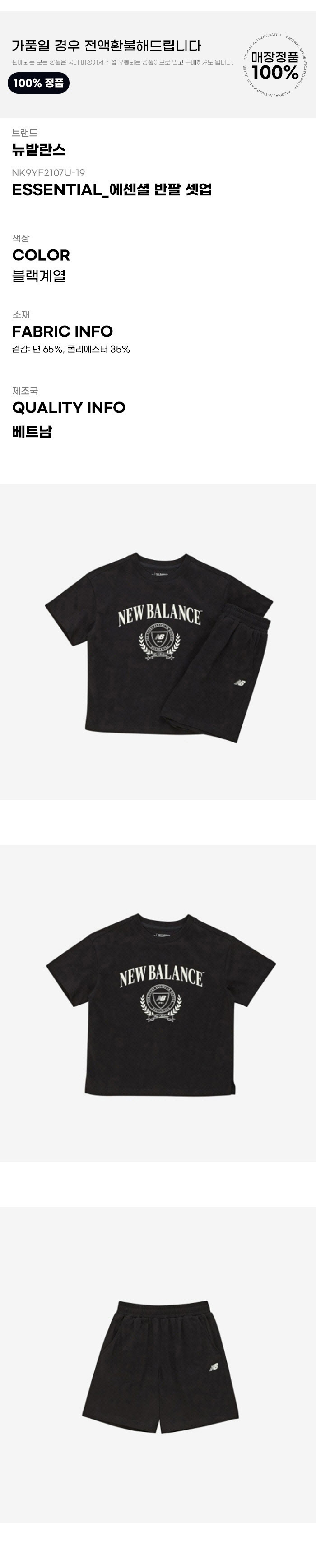 (현대Hmall)뉴발란스키즈트레이닝세트 PQC NK9YF2107U-19 ESSENTIAL_에센셜 반팔 셋업