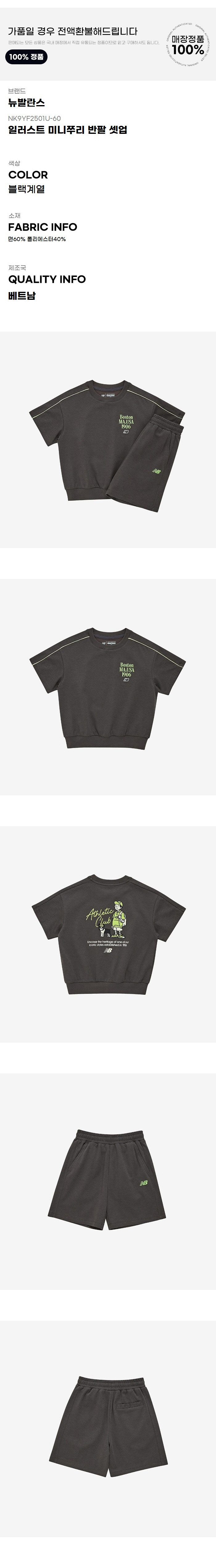 (현대Hmall)뉴발란스키즈트레이닝세트 PQC NK9YF2501U-60 일러스트 미니쭈리 반팔 셋업