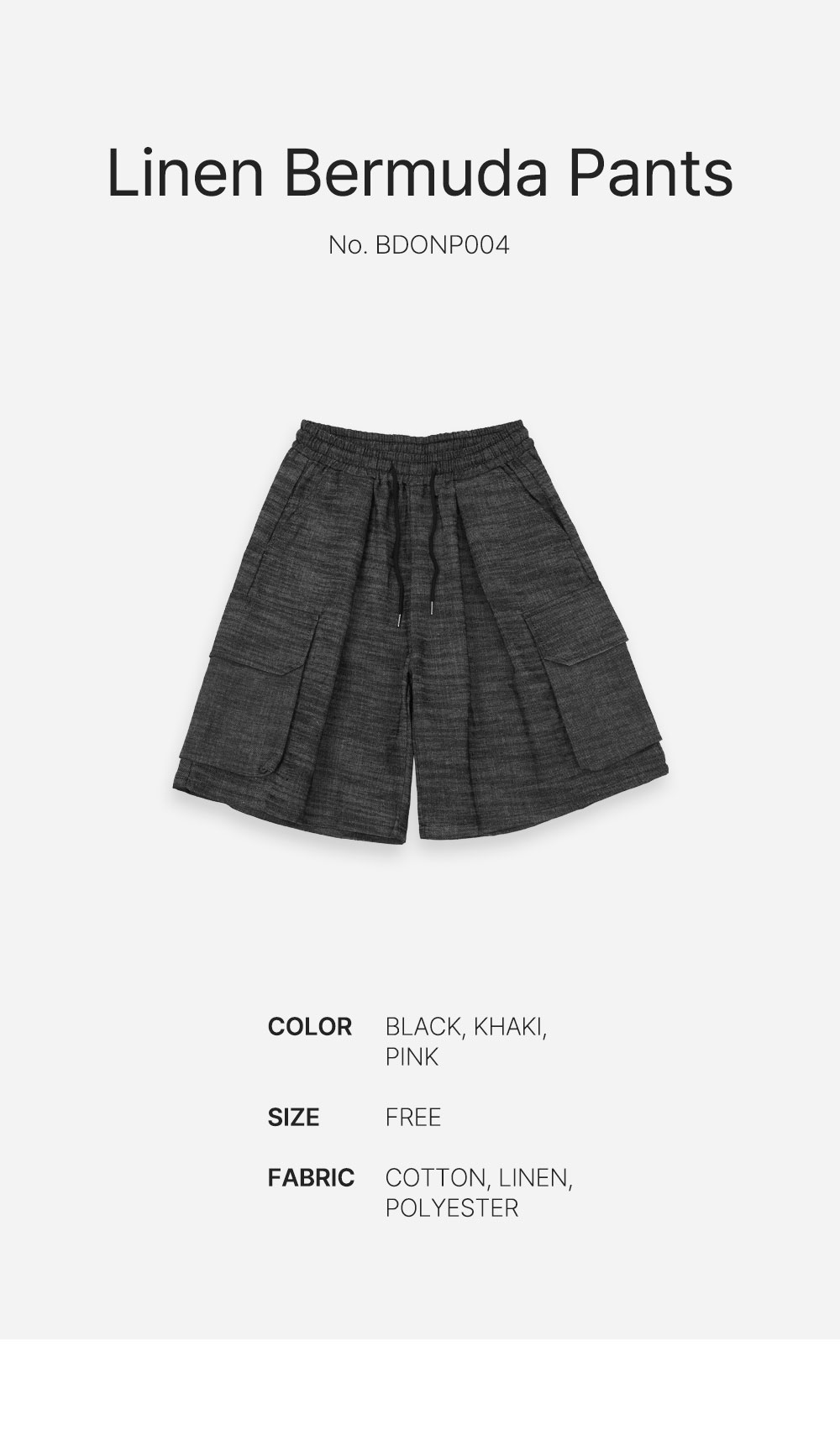 남자 린넨 원턱 와이드 팬츠 카고 밴딩 반바지 BDONP004