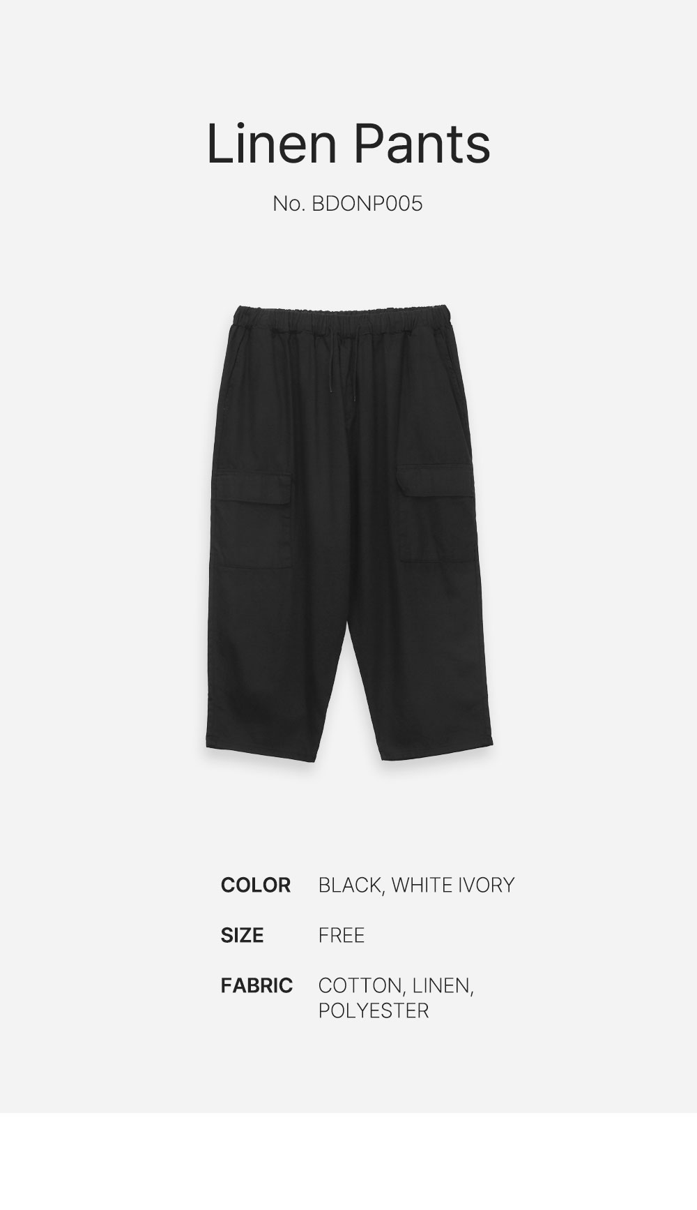 남성 여름 쿨링 린넨 벌룬 와이드 카고팬츠 BDONP005