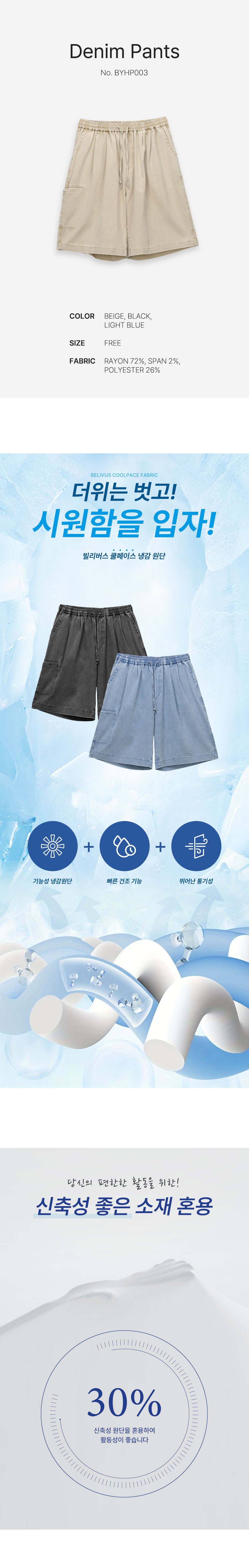 남성 청바지 냉감 스판 밴딩 데님 반바지 BYHP003
