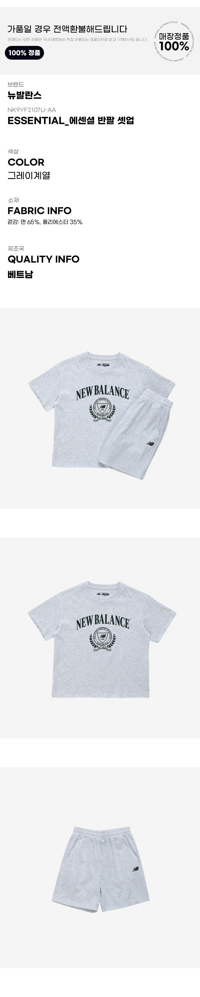 (현대Hmall)뉴발란스키즈트레이닝세트 PQC NK9YF2107U-AA ESSENTIAL_에센셜 반팔 셋업