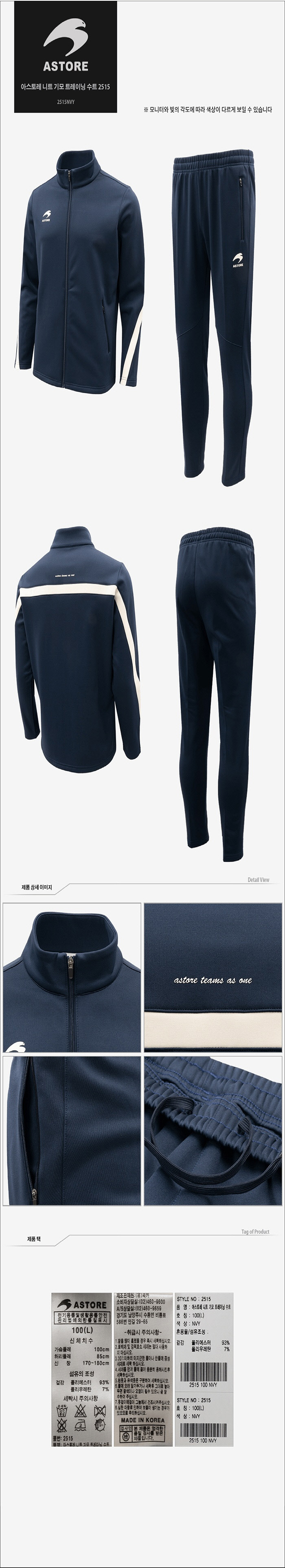 (현대Hmall)아스토레트레이닝세트 ZQC 2515NVY 니트 기모 트레이닝 수트 2515
