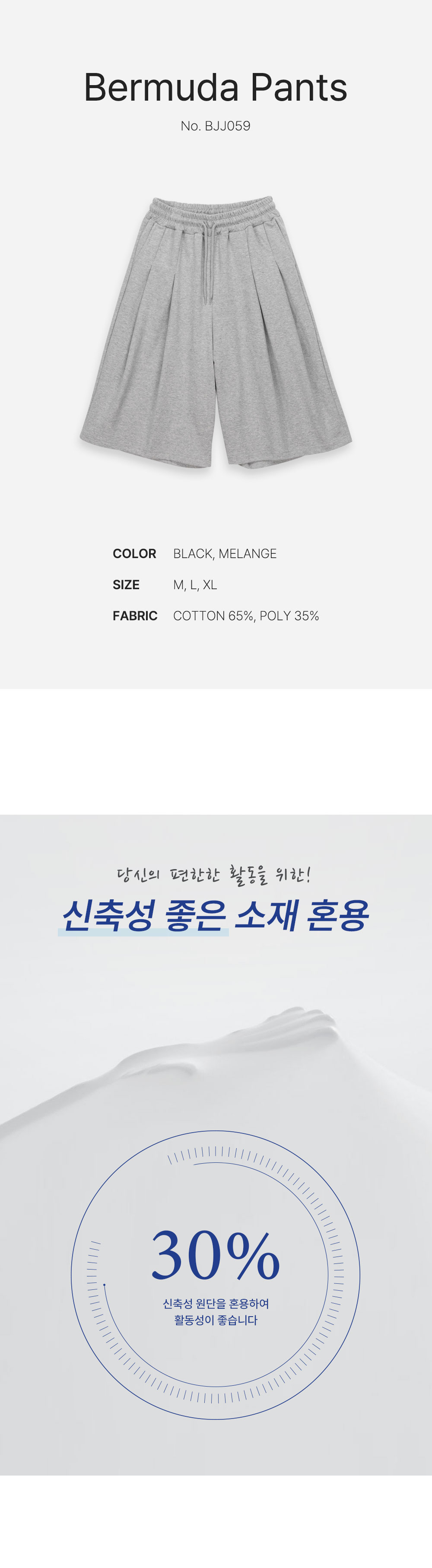 남성 와이드 밴딩 핀턱 하프 버뮤다팬츠 BJJ059