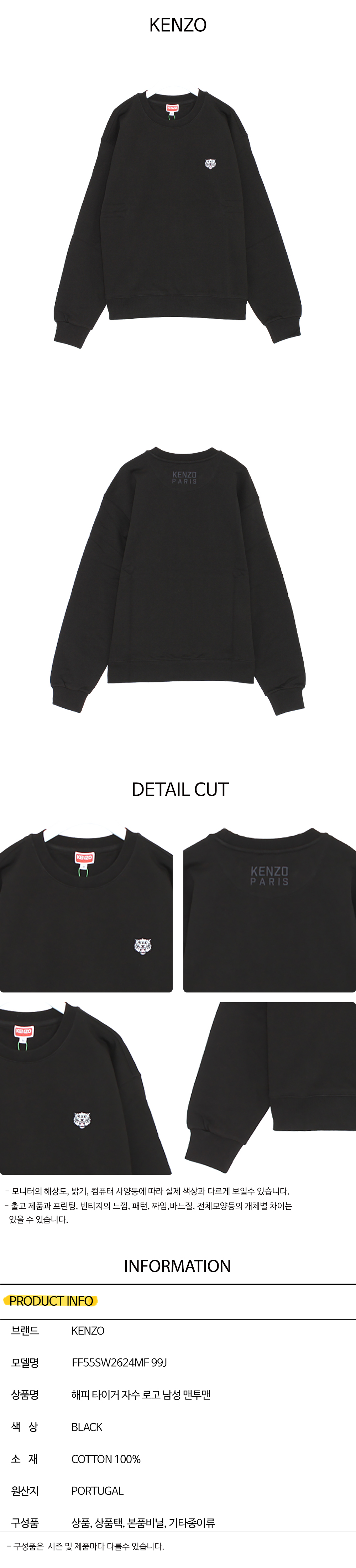 명품 겐조 해피 타이거 자수 로고 남성 맨투맨 FF55SW2624MF 99J