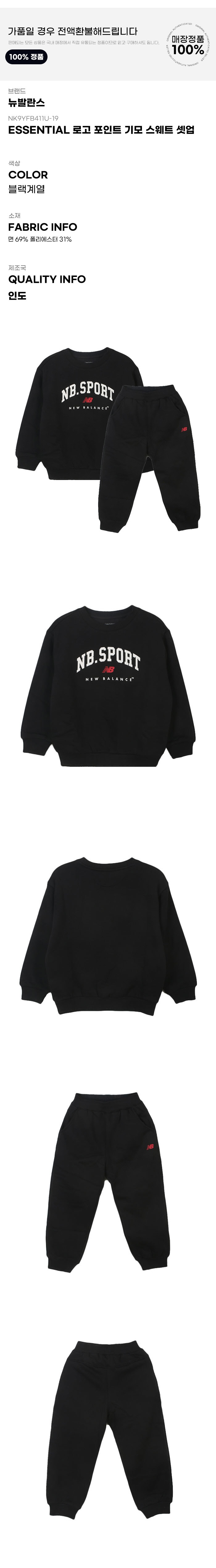 (현대Hmall)뉴발란스키즈트레이닝세트 PQC NK9YFB411U-19 ESSENTIAL 로고 포인트 기모 스웨트 셋업