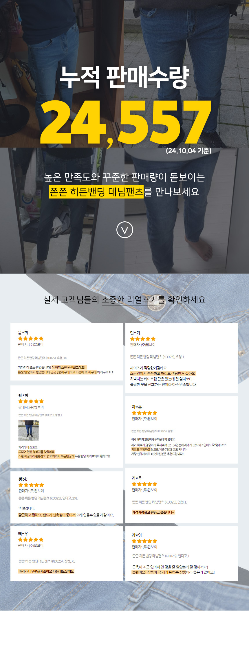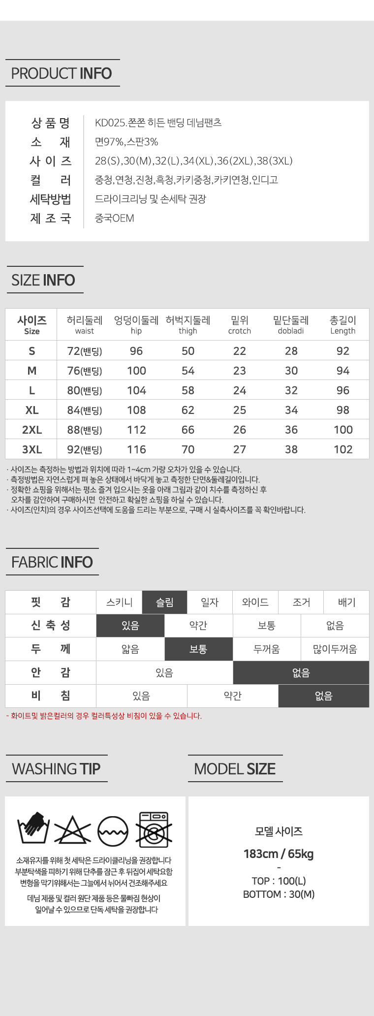 탑보이탑보이 당일출고 쫀쫀 히든 밴딩 데님팬츠 (KD025)