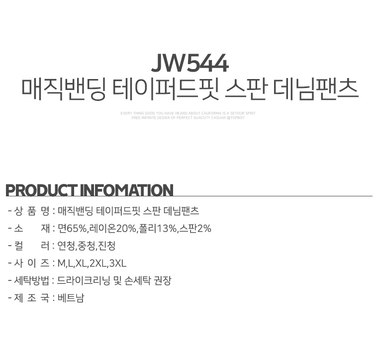탑보이탑보이 매직밴딩 테이퍼드핏 스판 데님팬츠 (JW544)