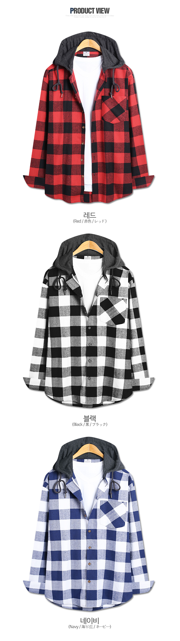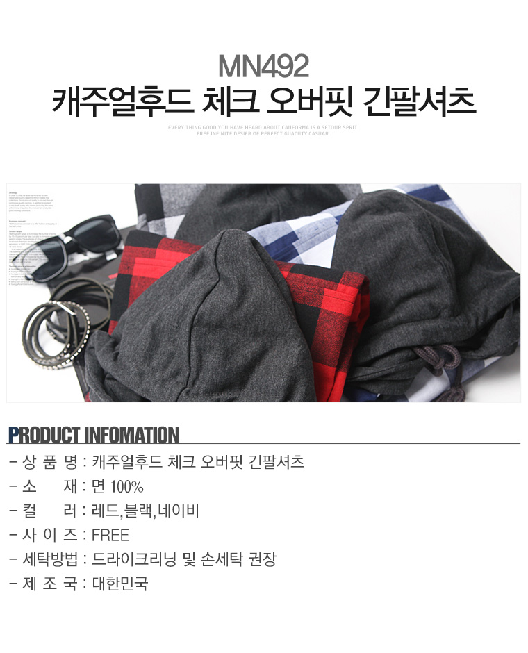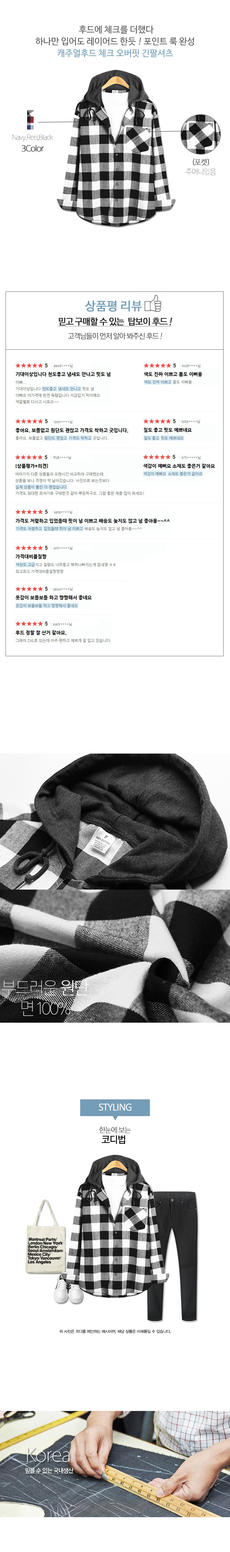 탑보이탑보이 캐주얼후드 체크 오버핏 긴팔셔츠(MN492)