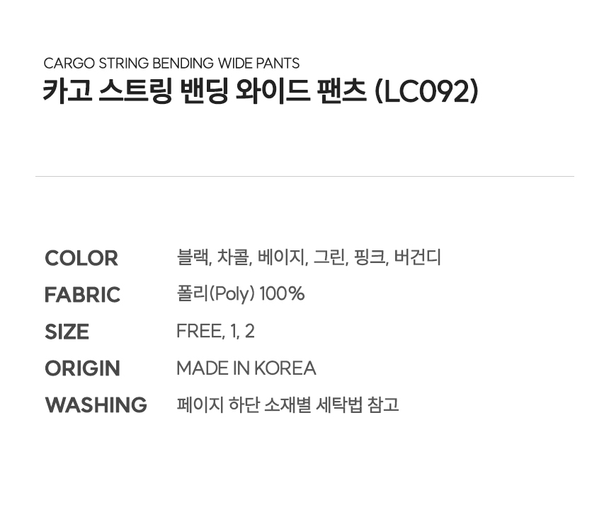 탑보이솔리드 와이드 카고팬츠 (TBFA0002)