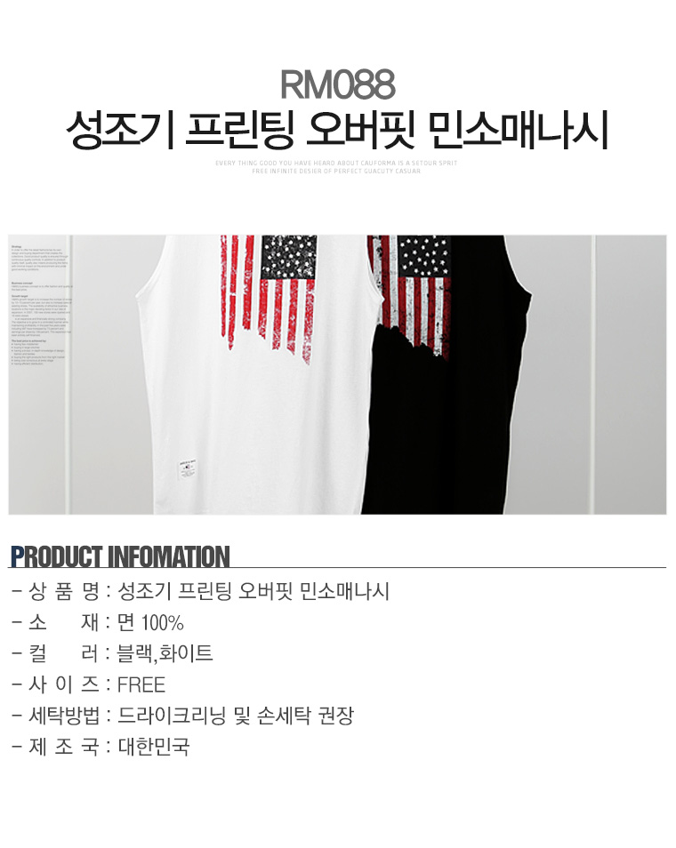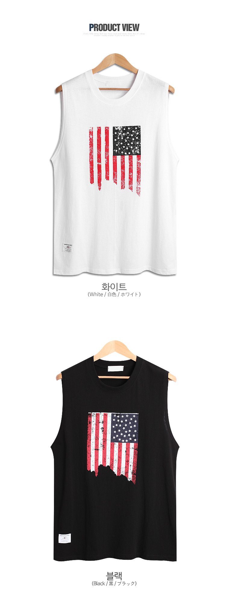 탑보이탑보이 성조기 프린팅 오버핏 민소매나시 (RM088)