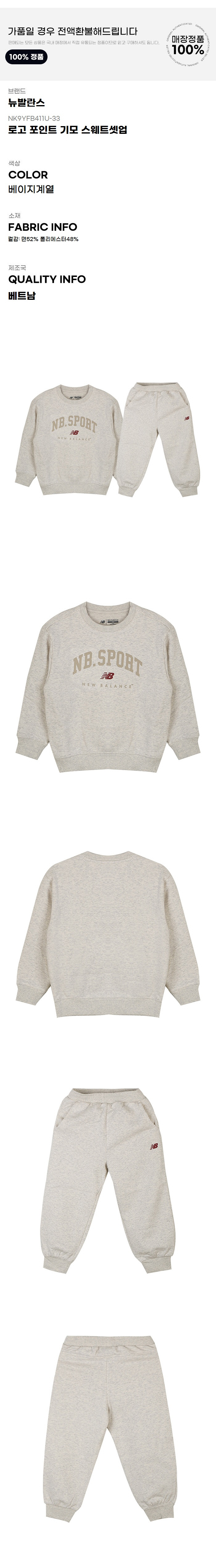 (현대Hmall)뉴발란스키즈트레이닝세트 PQC NK9YFB411U-33 로고 포인트 기모 스웨트셋업
