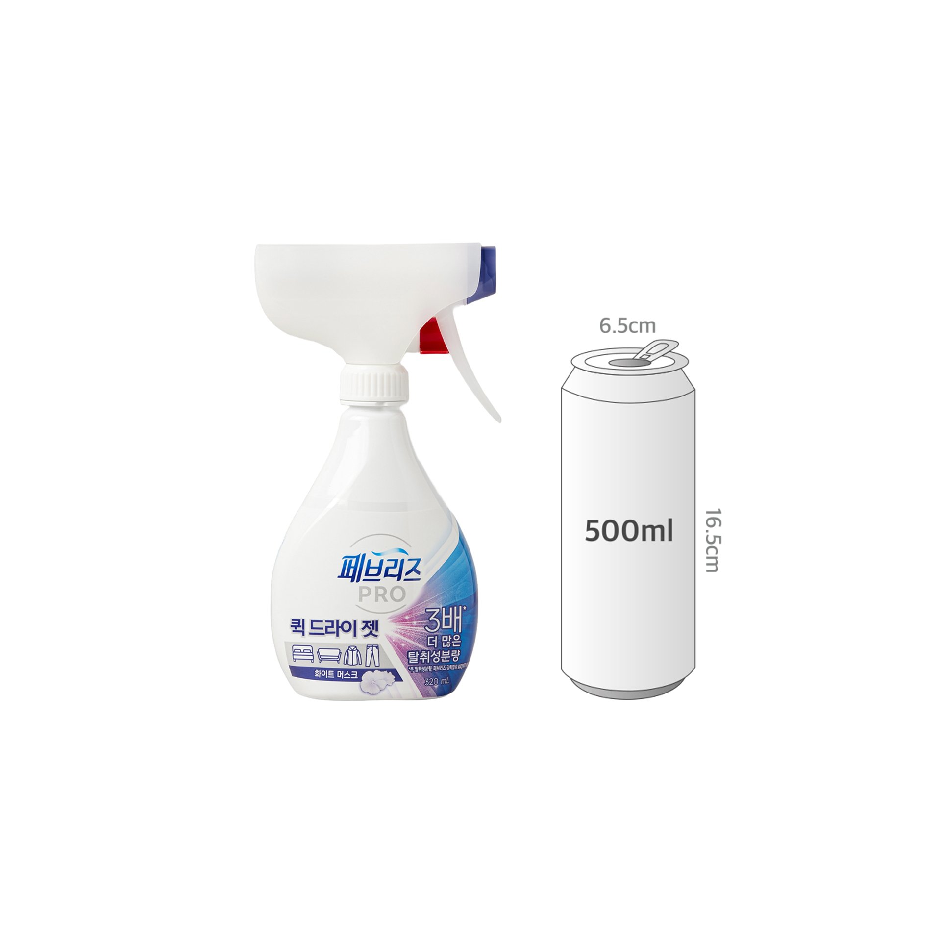 축축한 마무리감 없이 안개분사로 뽀송하게 상쾌함만 남는 페브리즈 퀵 드라이젯을 만나보세요. 부드러운 머스크향과 이슬 맺힌 꽃잎의 싱그러움을 머금은 화이트 머스크 향이 꿉꿉하고 불쾌한 냄새는 잡아주고 상쾌함만 남긴답니다. 고른 분사력과 넓은 커버력으로 침구와 소파에도 편리하게 사용할 수 있죠. 당장 오늘 입어야 하는 옷에 뿌려도 축축해질 걱정 없이 바로 뿌리고 외출할 수 있답니다. 게다가 OIT, DBP, DEHP, 글리옥살 색소 무첨가로 아이부터 어른까지 안심하고 사용할 수 있어요. 기존 제품 대비 3배 더 많은 탈취 성분량을 함유해 더욱 강력해진 페브리즈로 주위에 상쾌함만 남겨보세요.