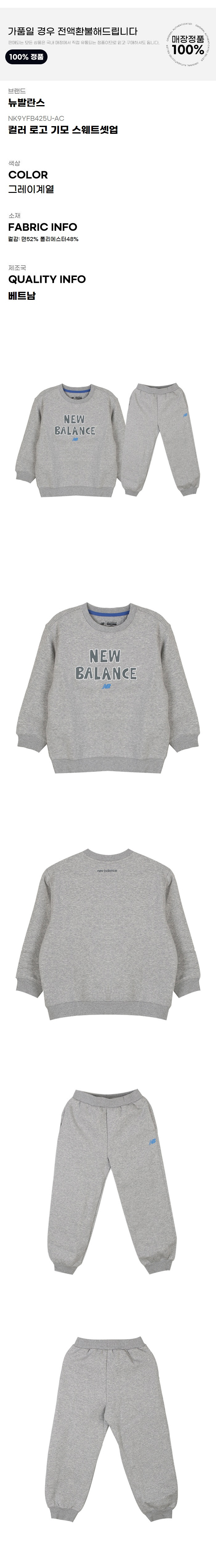 (현대Hmall)뉴발란스키즈트레이닝세트 PQC NK9YFB425U-AC 컬러 로고 기모 스웨트셋업