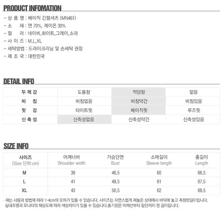탑보이탑보이 베이직긴팔셔츠 (MN461)