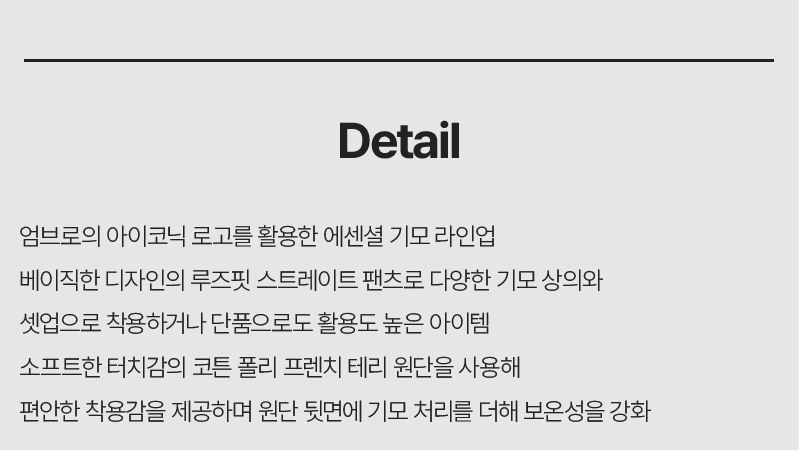 (현대백화점)엄브로 에센셜 기모 루즈 스트레이트 팬츠 UQ423CFPO2_BLK0