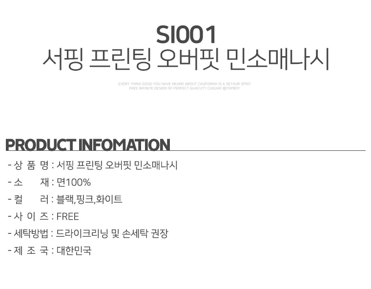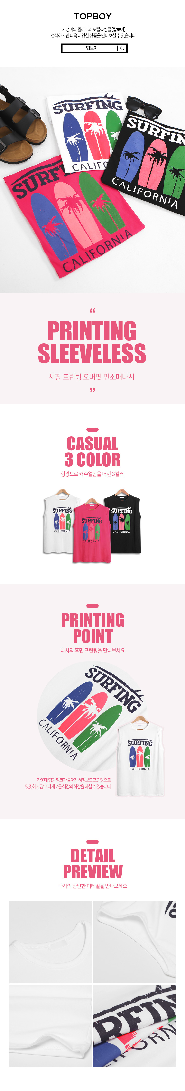 탑보이탑보이 서핑 프린팅 오버핏 민소매나시 (SI001)