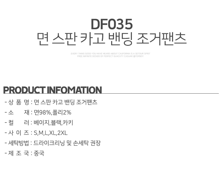 탑보이탑보이 면 스판 카고 밴딩 조거팬츠 (DF035)