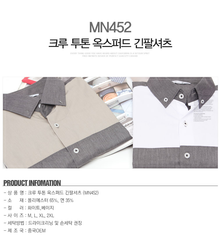 탑보이탑보이 크루 투톤 옥스퍼드 긴팔셔츠(MN452)