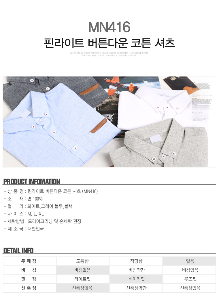 탑보이탑보이 핀라이트 버튼다운 코튼 긴팔셔츠 (MN416)
