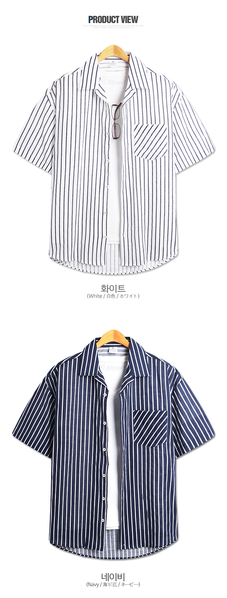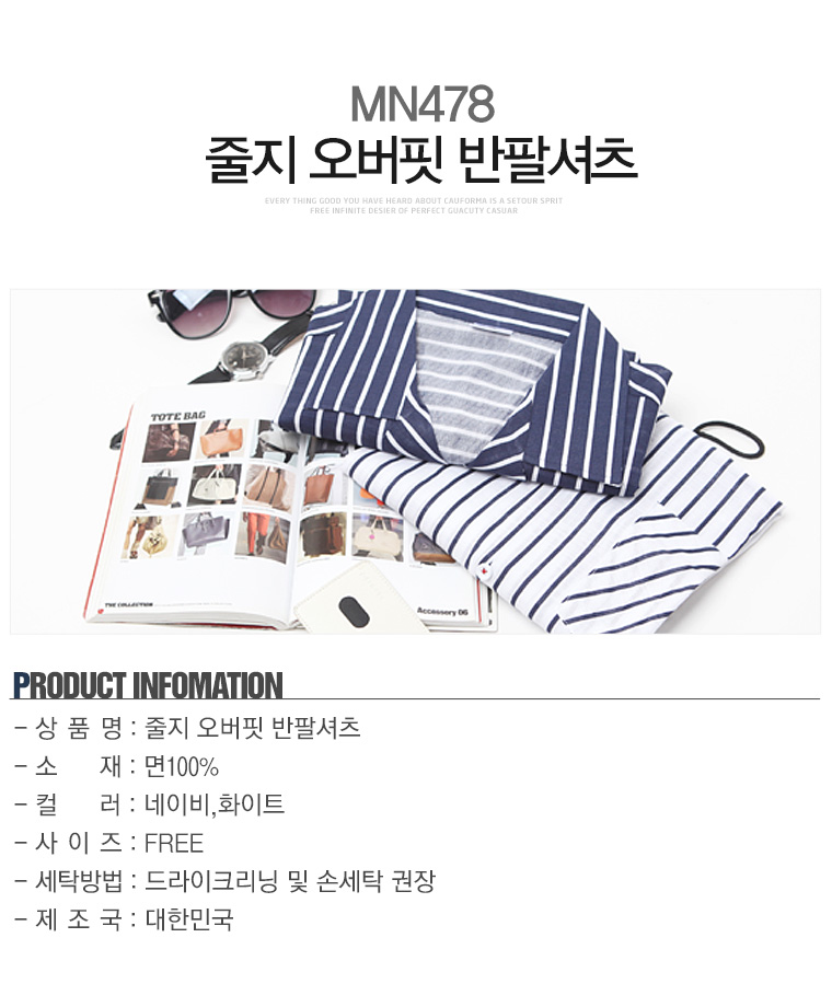 탑보이탑보이 오버핏 줄지 반팔셔츠 (MN478)