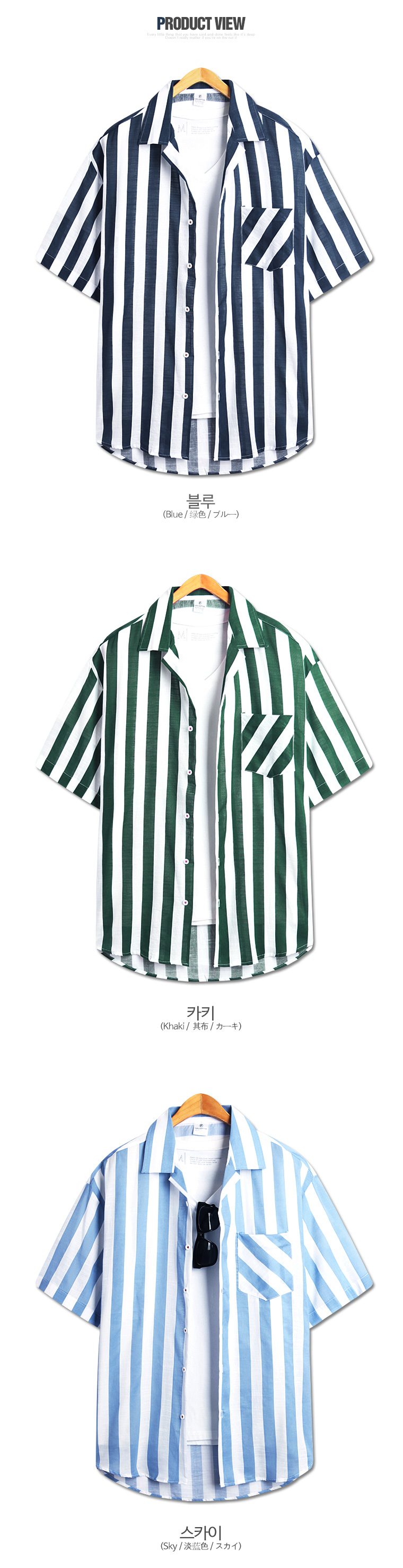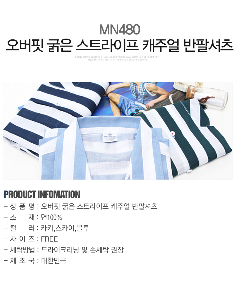 탑보이탑보이 굵은 스트라이프 오버핏 캐주얼 반팔셔츠 (MN480)