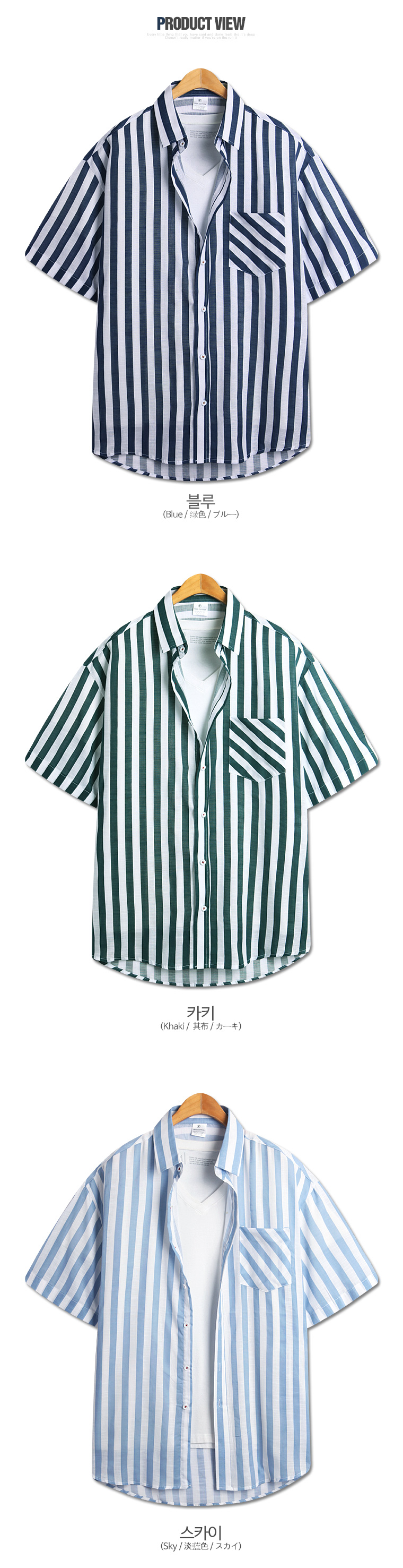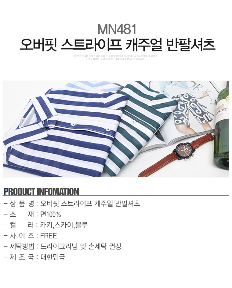 탑보이탑보이 스트라이프 캐주얼 오버핏 반팔셔츠 (MN481)