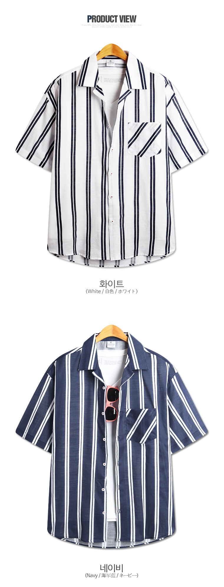 탑보이탑보이 2LINE 심플 스트라이프 오버핏 반팔셔츠 (MN479)
