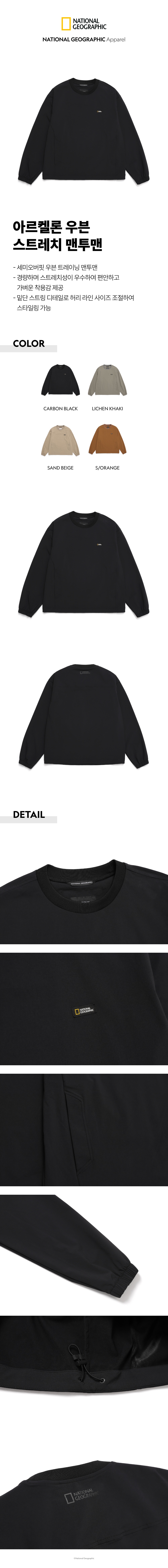 (현대Hmall)정상가:139000원내셔널지오그래픽 N243USW930 아르켈론 우븐 스트레치 맨투맨 CARBON BL
