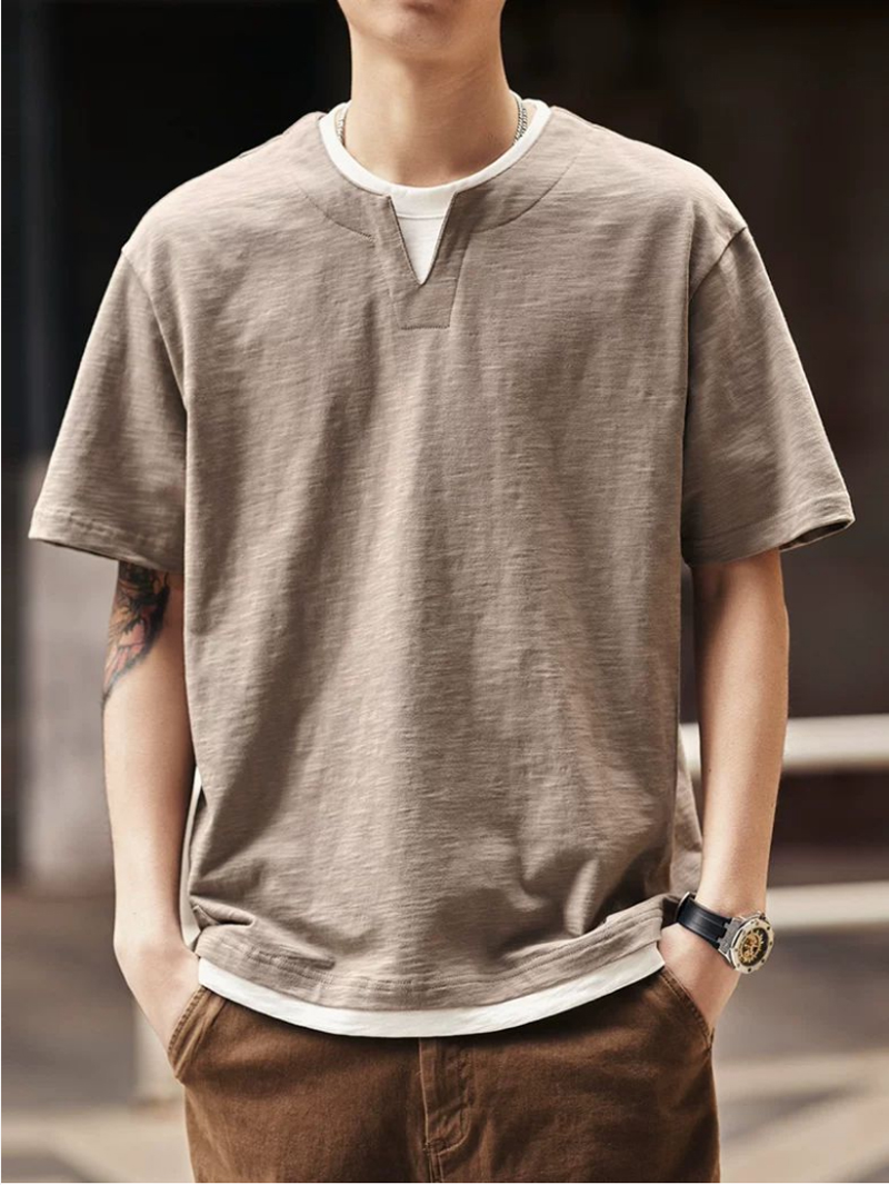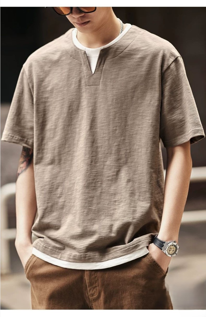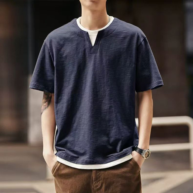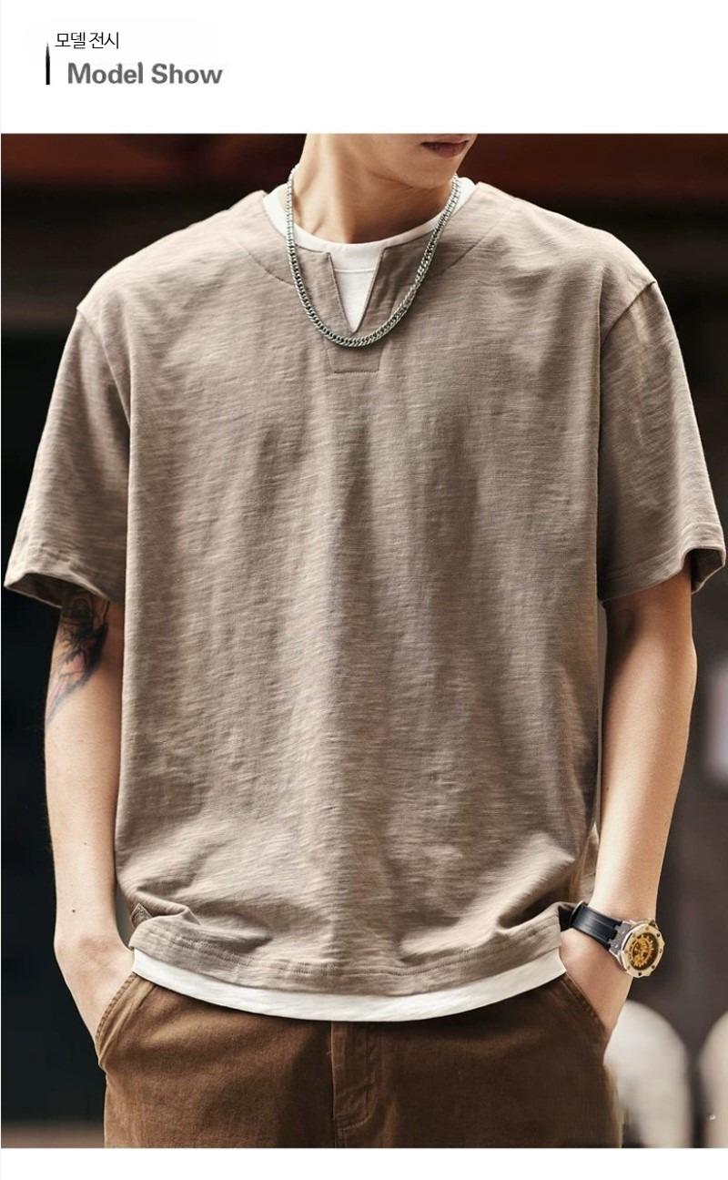 남성 라운드넥 코튼 린넨 반팔 티셔츠 여름 편안한 데일리 무지 베이직 외출용 남성용