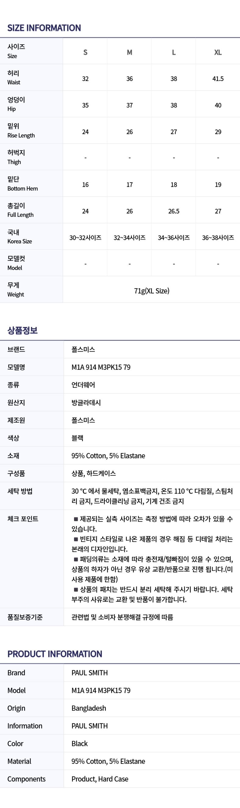 남성 언더웨어 M1A 914 M3PK15 79 3종 세트)