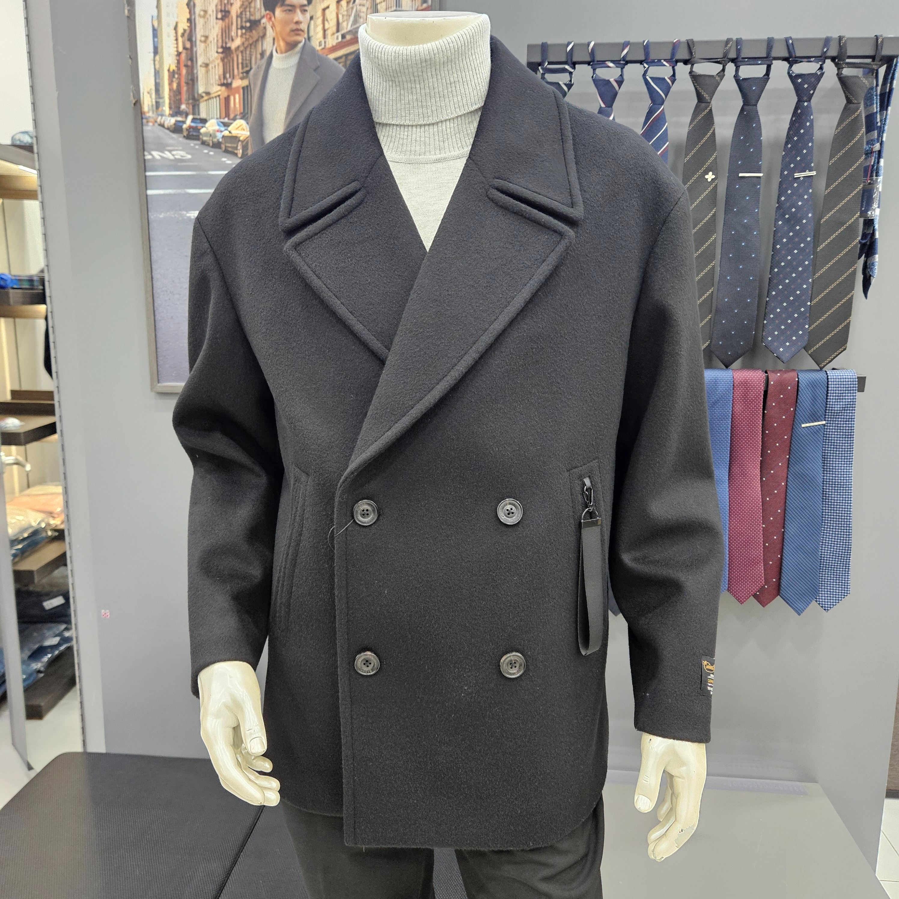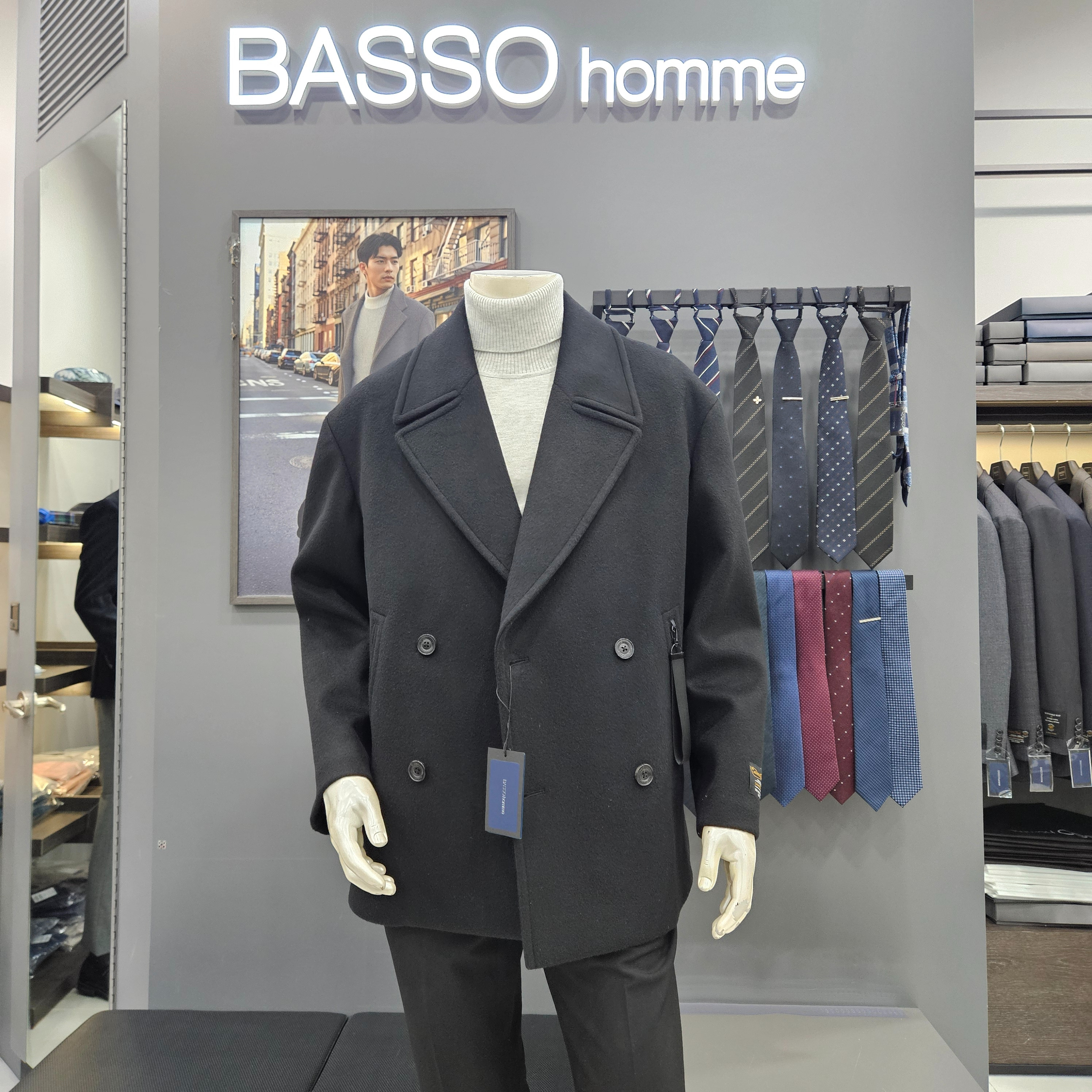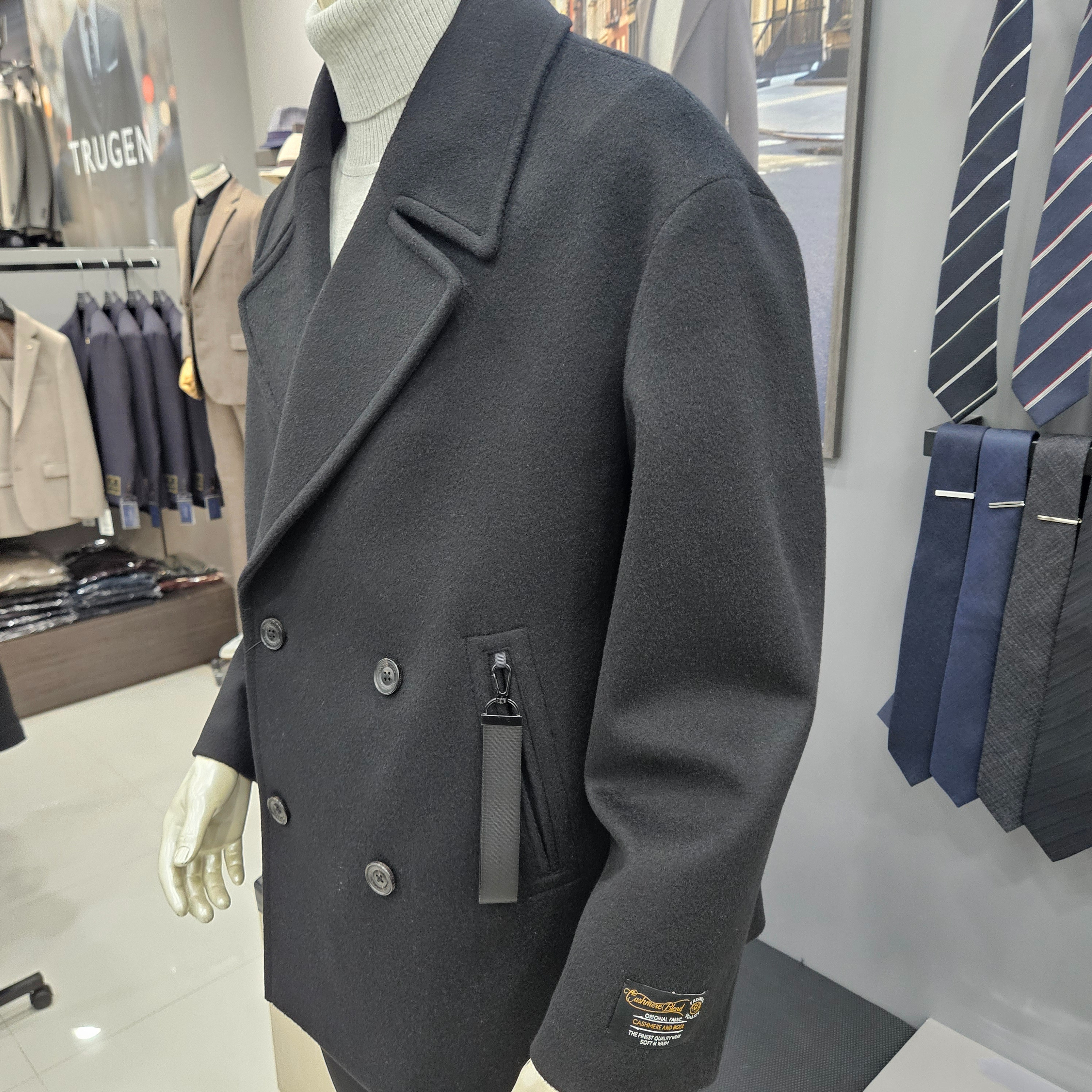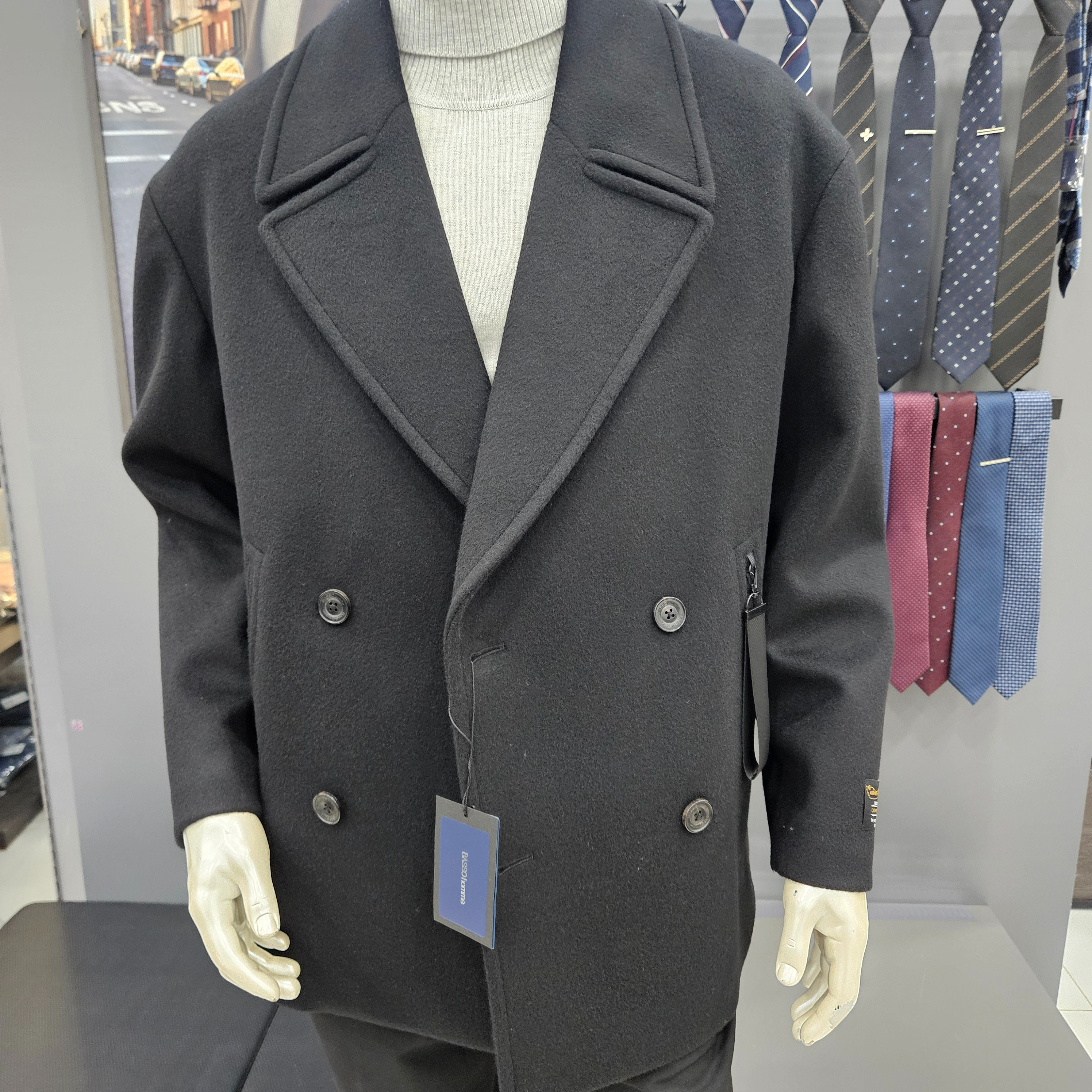 심플ㆍ울캐시미어오버핏블랙하프더블코트WSY4CD37