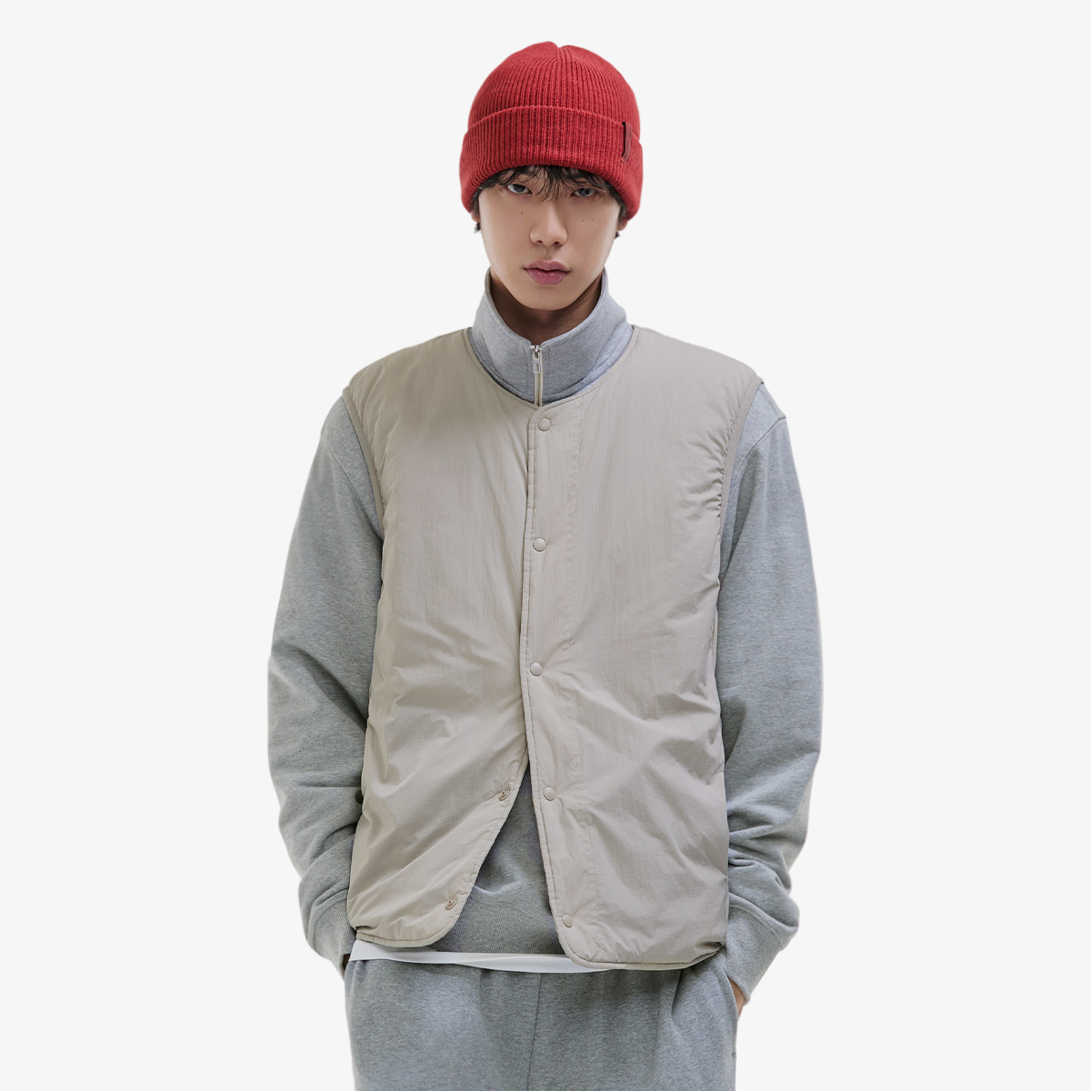 바깥쪽에 퀼팅이 없어 깔끔해보이는 외관, 얇고 가벼워 레이어드해서 입기에도 용이