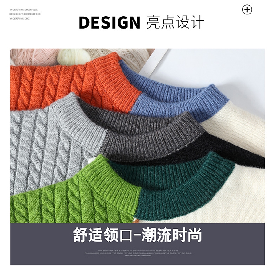 레트로 라운드넥 스웨터 남성 가을 겨울 고급 남성 스티치 맨투맨 유니크 디자인 캐주얼 남친 스타일 니트 남녀공용