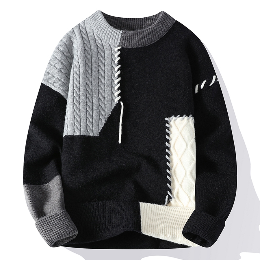 레트로 라운드넥 스웨터 남성 가을 겨울 고급 남성 스티치 맨투맨 유니크 디자인 캐주얼 남친 스타일