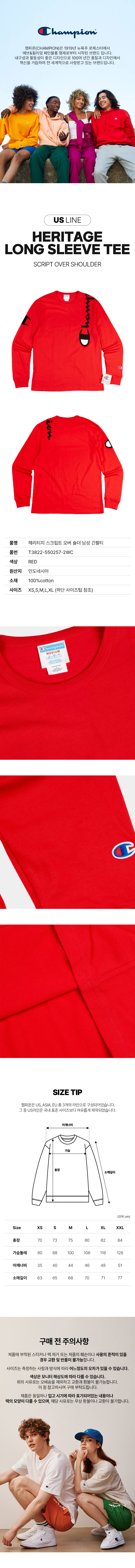 헤리티지 스크립트 오버 숄더 남성 긴팔티 레드