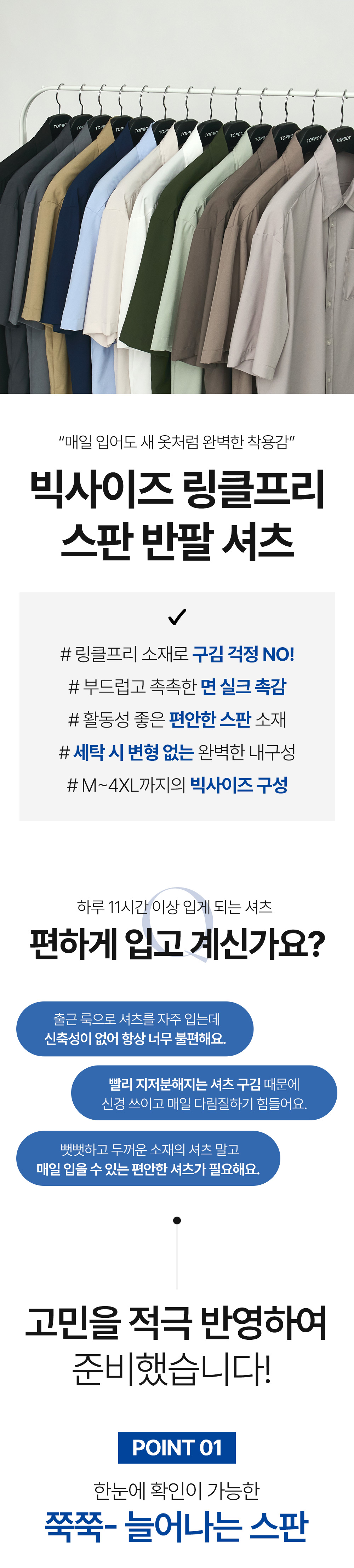 탑보이탑보이 빅사이즈 남자 링클프리 스판 반팔 셔츠 (JC006)