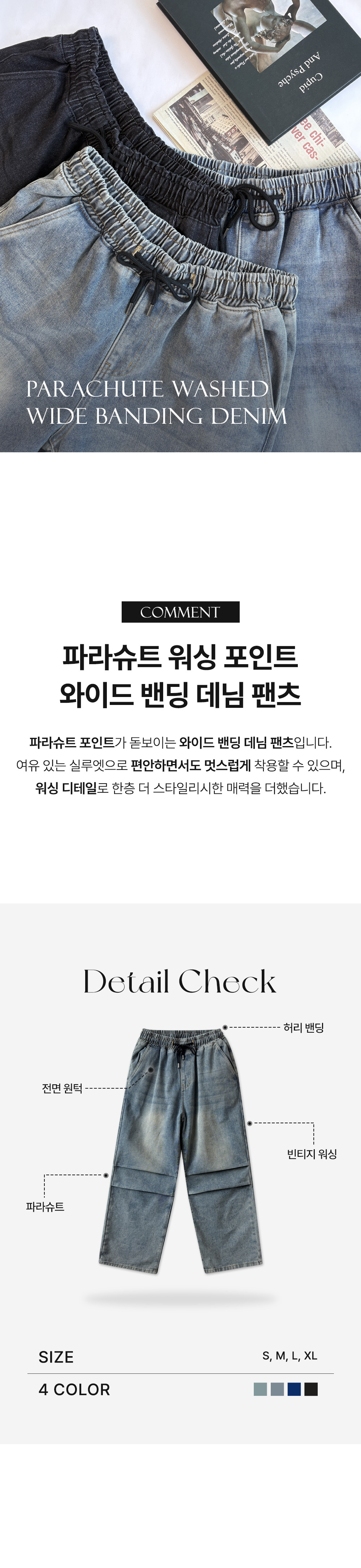 탑보이탑보이 파라슈트 워싱 와이드 밴딩 데님 팬츠 (BN056)