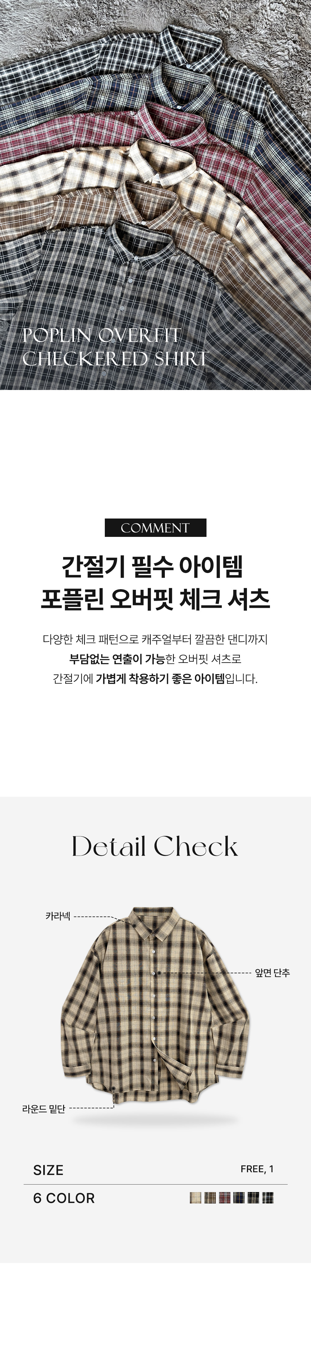 탑보이탑보이 남녀공용 간절기 포플린 오버핏 체크 셔츠 (LC150)