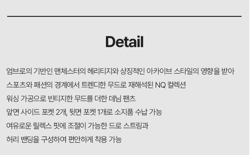 (현대백화점)엄브로 NQ 워싱 드릴 데님 팬츠 UQ311CPT81