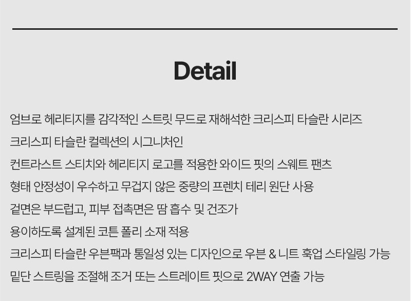 (현대백화점)엄브로 크리스피 타슬란 와이드 스트레이트 스팬츠 UQ321CFP91