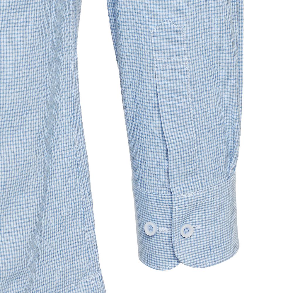 조직감이 살아있는 마이크로체크 패턴 원단으로 제작된 셔츠입니다.