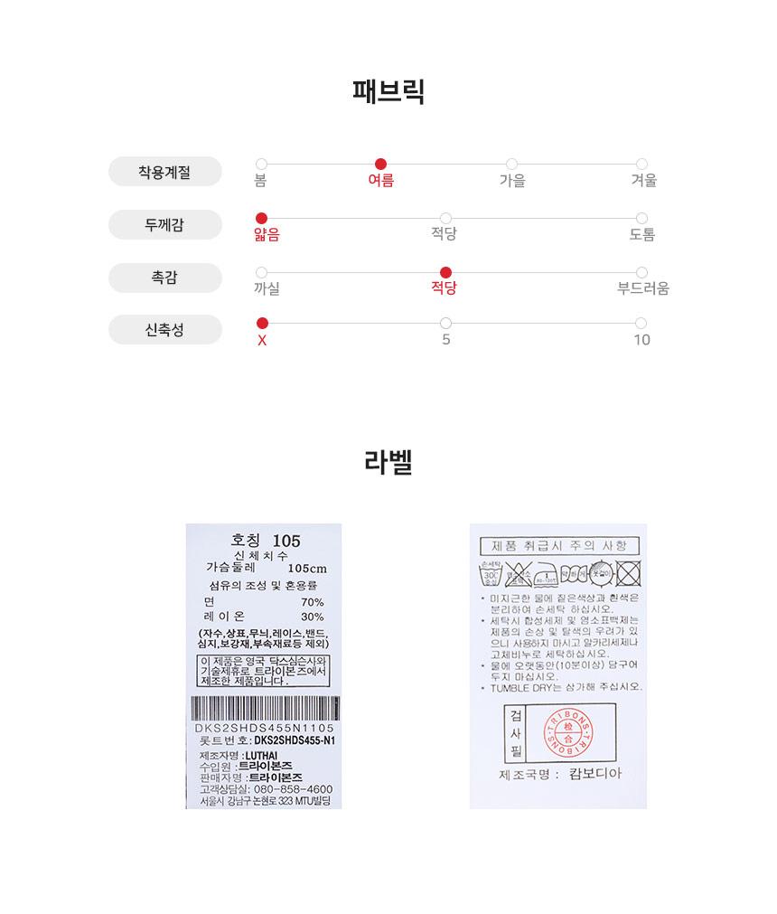 일상 착용 시 자연스러운 구김이 생기는 상품으로 세탁 후 일반/스팀 다리미로 관리해주세요.