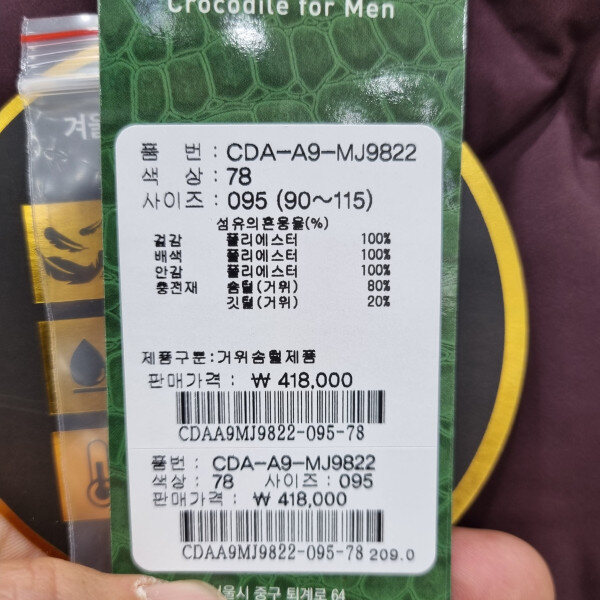반품 주소 경기 시흥시 장현능곡로 155 모다아울렛 4층 크로커다일남성