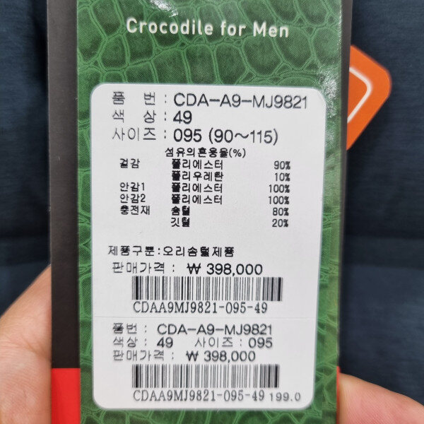 반품 주소 경기 시흥시 장현능곡로 155 모다아울렛 4층 크로커다일남성